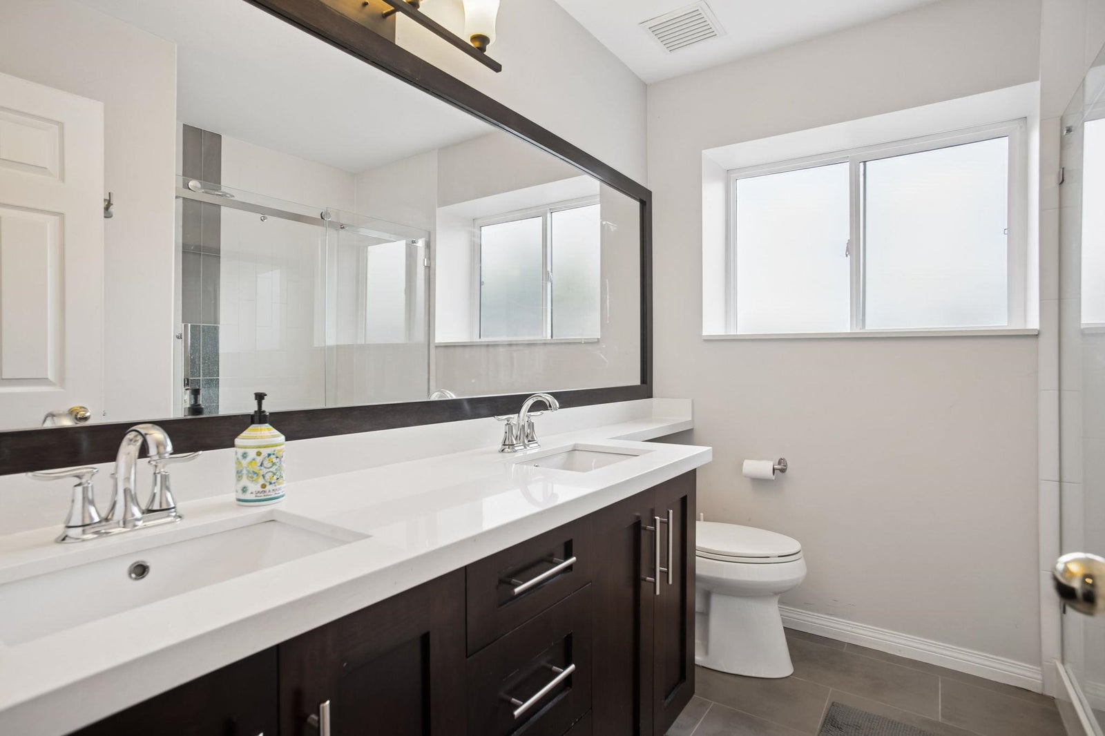 ONE OF A KIND & EXTREMELY RARE FIND! Welcome home to this 2,908 SF 5 BED 3 FULL BATH duplex that feels like a SINGLE FAMILY HOME! RENOVATED & move-in-ready w/ tons of updates. Chef's kitchen w/ newer stainless steel appliances, large island & tons of cabinetry/countertop space for all your cooking needs. Pot-lights throughout to a cozy family room & gas fireplace. Ground floor has spacious bedroom w/ ensuite perfect for elderly or guests! All bedrooms upstairs are enormous in size & bathrooms renovated. Newer painting inside & out. 50-year tile roof, radiant floor heating, double garage w/ mud room & newer laundry + TOO MUCH TO LIST! SOUTH-facing private backyard perfect for pets/kids to play! PRIME LOCATION - steps to MINORU PARK, transit, schools, Richmond Centre & MORE! DON'T MISS THIS!